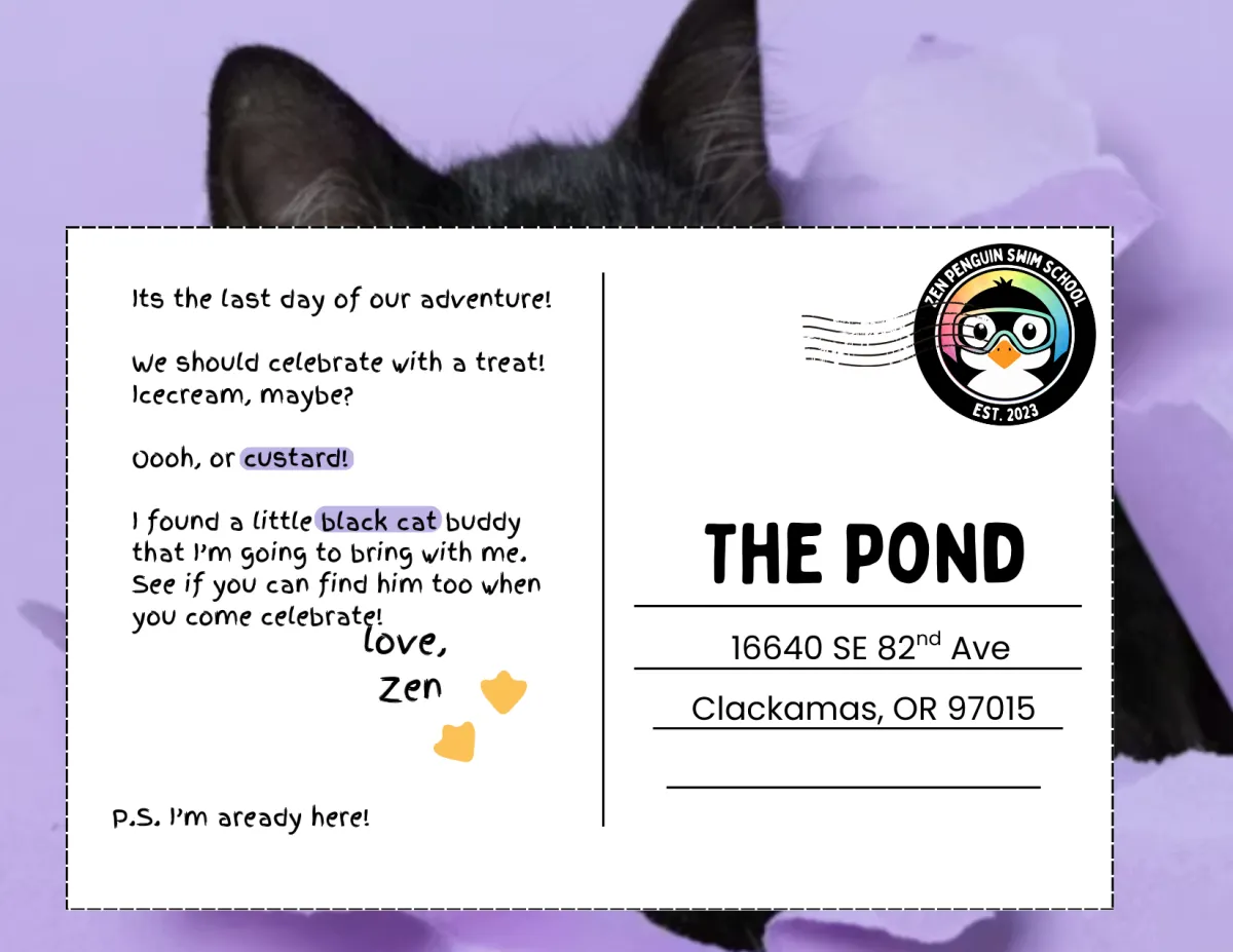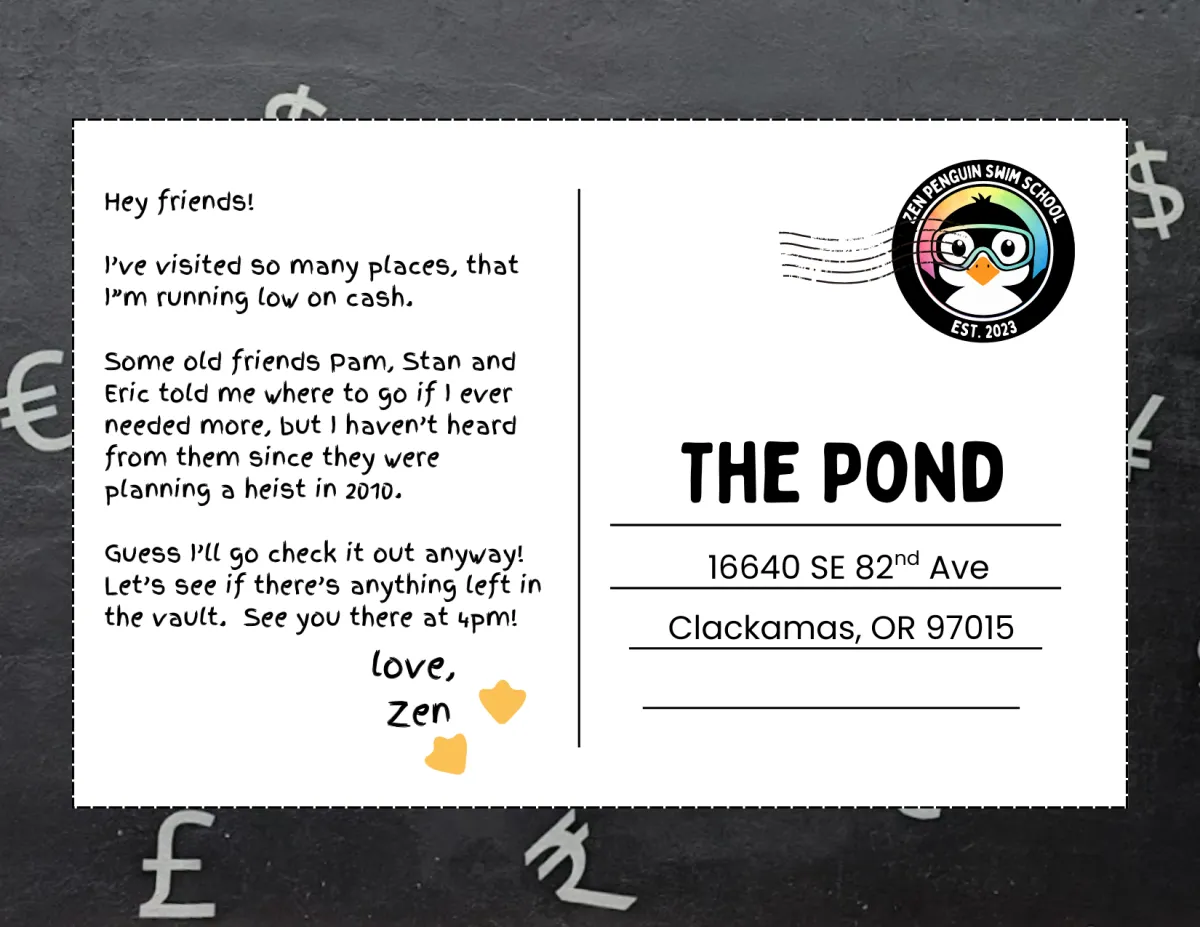 Register on our website https://zenpenguinswimschool.com/findzen to sign up for daily clues and be registered to win!