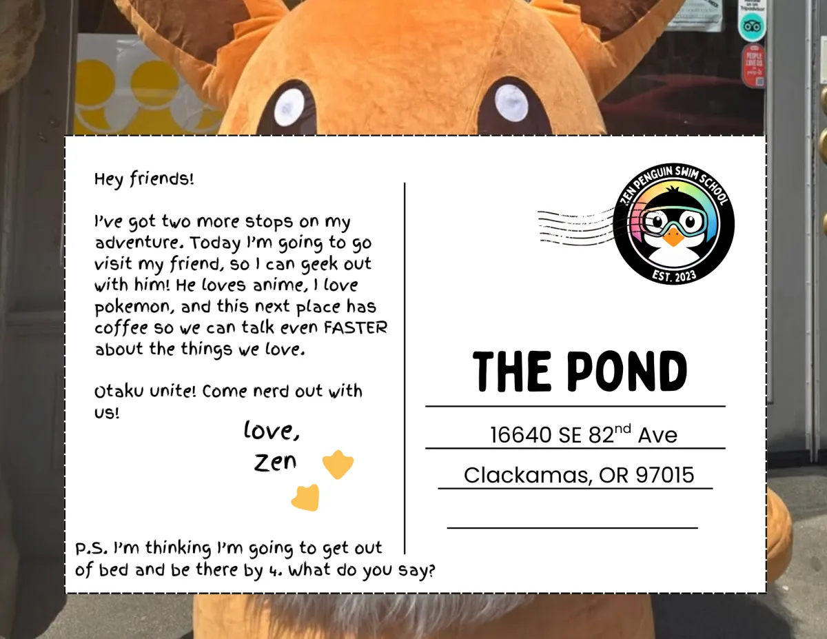 Take a picture of Zen and post it online (facebook or Instagram) by tagging @ZenPenguinSwimSchool